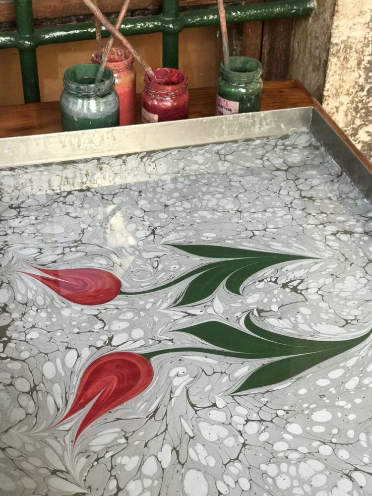 • A private session with a local master, using traditional tools and pigments to create your own marbled paper.